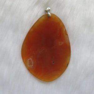 Stunning orange agate tear drop pendant. This handmade piece is a unique one. I understand it is the Peachblow Fire/Dragon Veins Agate which if you are feeling burnt out, it is said that this agate helps you re-evaluate and re-balance your life.
