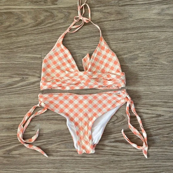 • Classic cut bottoms with subtle bum scrunch and ties details at the hips