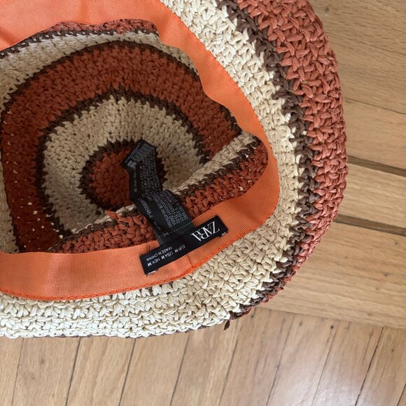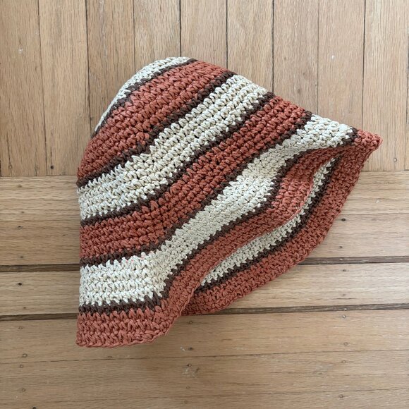 Orange/Brown/Beige Crochet Bucket Hat from Zara in Size M. Easily fold-able for travelling and vacay!