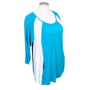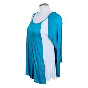 Elevate your wardrobe with this stylish top from Orange Fashion Village. Made with a blend of spandex and bamboo viscose, this knit t-shirt offers comfortable stretch and easy care with its machine washable garment care instructions. The classic/fitted sleeve and scoop neck neckline make it perfect for all occasions, whether you're traveling, running errands or heading to work. In a beautiful aqua blue and white colorblock pattern, this top features a minimalist, coastal, classic and retro theme that will never go out of style. Available in size S/M and fit for regular size types, this top is a must-have addition to your collection. Upgrade your wardrobe with this Orange Fashion Village top, perfect for any season. It has pockets!