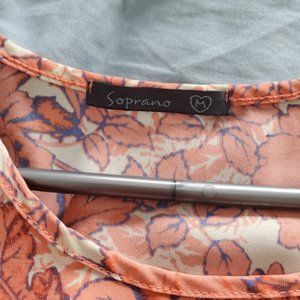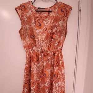 Orange Floral Elastic Waist Dress