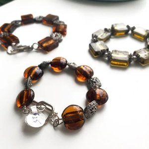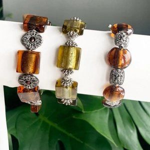 Orange & Gold Handmade Glass & Metal Bracelet Trio with Silver Accents