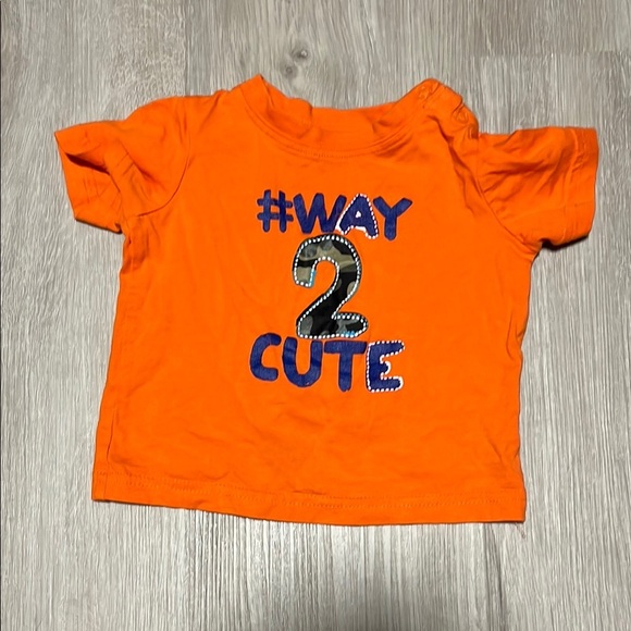 Brighten up your child's wardrobe with this vibrant orange shirt featuring a playful '#Way 2 Cute' print. Perfect for everyday wear.