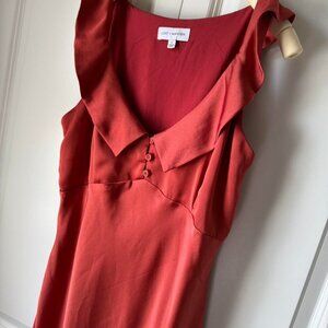 Orange Lost + Wander silky dress with ruching and ruffles #ruffles