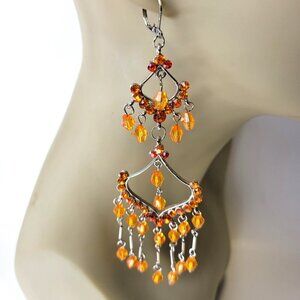 Orange Rhinestone Earrings Tassel Beaded Earrings