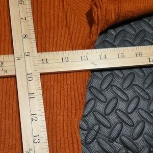 Stay cozy and stylish with this vibrant orange ribbed crew neck sweater. Perfect for layering or wearing on its own.