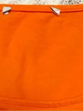 Smooth, breathable fabric in vibrant orange, that pairs easily with jeans or skirts. Easy pull-on style.