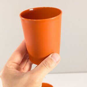 Orange Tupperware set of 4 short drinking cups, childrens tumblers