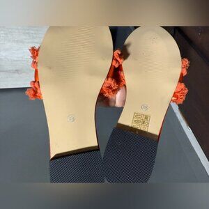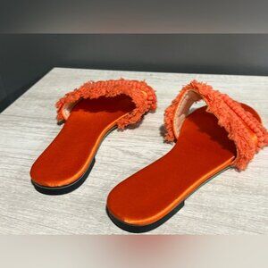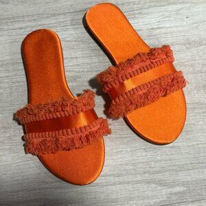 Orange Women's Slide Sandals Fringe Funky Size 8
