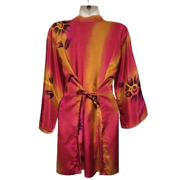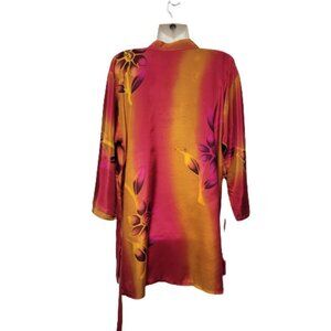 Orange and Red Floral Batik Tunic Blouse Top Size S/M
