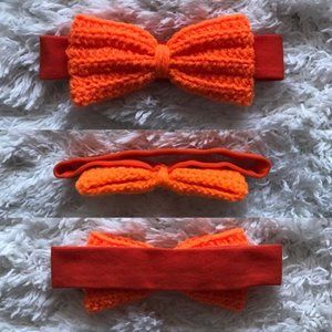 Orange crochet bow headband for baby girl or boy