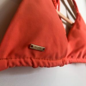 Beautiful bright orange bikini. Top has braided adjustable straps, bottom is cheeky and has scrunch detail on back! Great quality bathing suit and barely worn, in great condition. Doesn’t have a size tag but fits like a small/medium