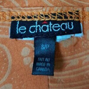 Orange with cream pattern crop top tied at neck and back Small Le Chateau