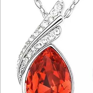 ⭐️ Orange Gemstone Fashion Angel Wings Crystal Necklace Earrings Jewelry Set