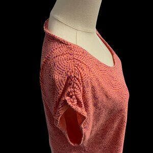 Orange/Purple Abstract Print Tee w/ Ruched Shoulder Details