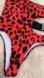 Stylish and fun, this swimsuit features a vibrant reddish orange and black leopard print. Perfect for pool days and beach adventures.
