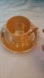 Iridecent peach orange lustreware porcelain mini tea esspesso cups & saucers set from Rising Sun Pottery, by Shimizu Ryunosuke Shoten.