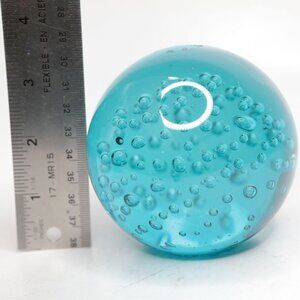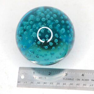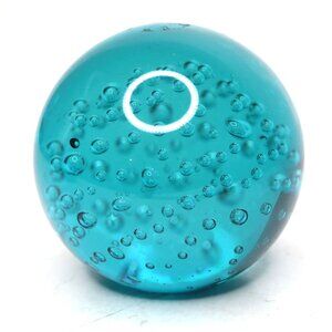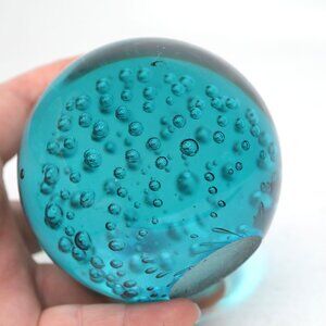 Orb Round Art Glass Paperweight Bubbles Blue Aqua Heavy Office Decor