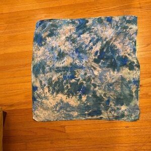 Organic cotton scarf, one of a kind art to wear tie dye square, blue and green