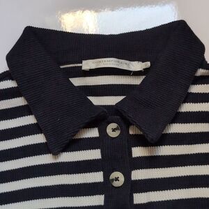 Stylish black and white striped sweater with a classic collar. Perfect for casual wear.