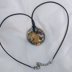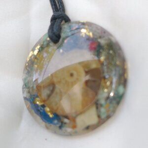 The ORGONITE is a synthetic stone composed of resin, metal shavings, and quartz, which transforms negative energy in the environment into healthy energy.