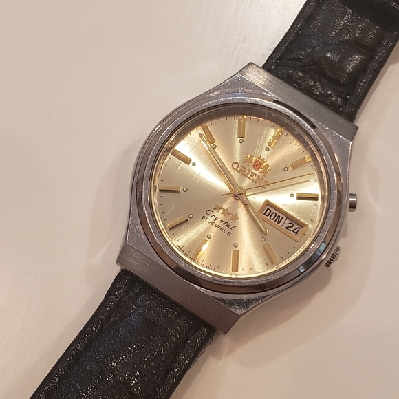 Vintage automatic Orient ***. Keeps time well. On aftermarket band.