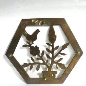 Oriental Brass TRIVET Bonsai Tree Bird Countertop Heat Resistant Stove