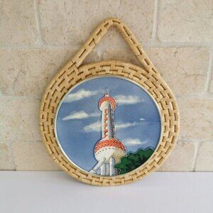 Oriental Pearl Tower Shanghai Art - Ceramic on Wicker China Souvenir
