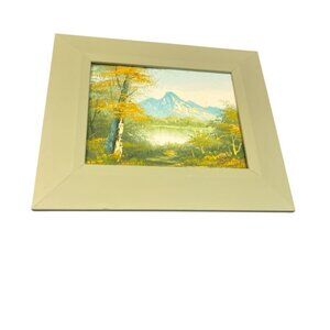 Original Art Landscape Oil Painting on Canvas Fall Colours Lake Mountain Framed
