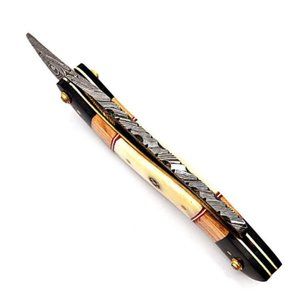 Original Damascus Folding Razor Bull Horn & Bone and Wood Handle - Pocket Razor