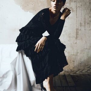 Original Designer Black Lace Dress with Ruffles Sz. Medium