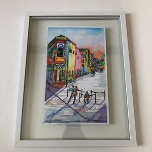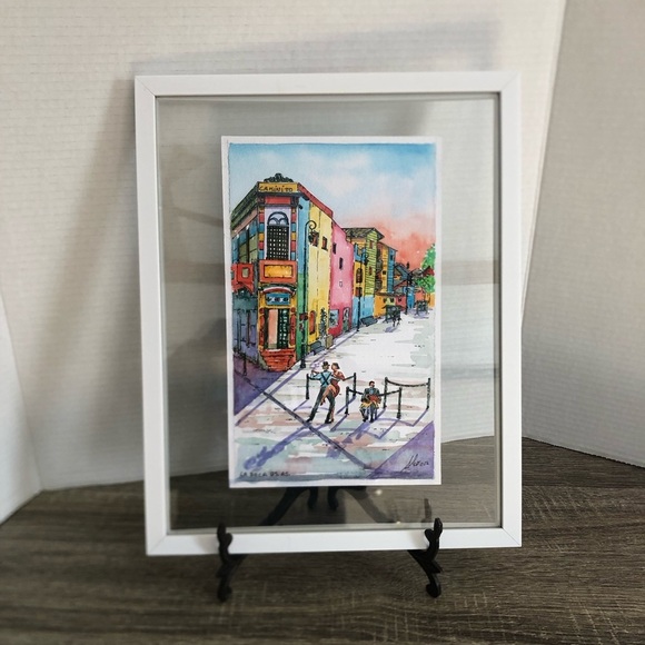 Watercolour featuring the streets of La Boca in Buenos Aires Argentina.