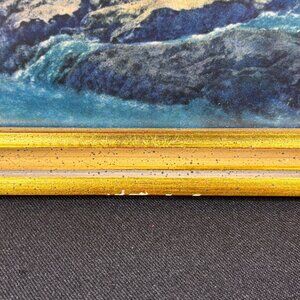 This mid-20th-century halftone lithograph was produced for decorative display (not cut from a calendar) and remains vibrant, with one small white spot near the bottom from printing (see photo). Housed in its original gold-tone wood frame with wire hanger and “Otten Gallery” label on the back.