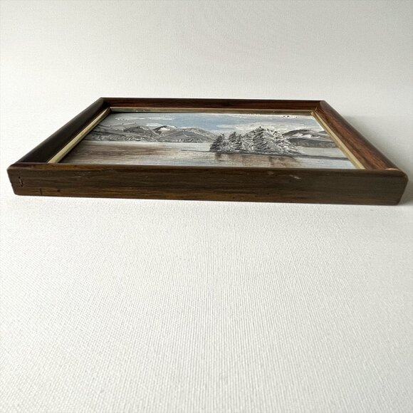Original Oil Painting Winter Landscape Vintage Rustic Framed Wall Art 7x5 Signed