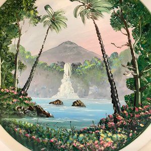 Original Oil Painting on Ceramic Plate Artist Signed Decorative Wall Hanging