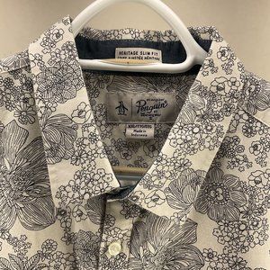 Original Penguin Button-down Shirt - Black and White Floral - Men's XL
