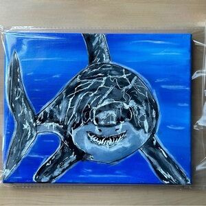 This painting is beyond cool and chilly, dare I say fin-credible! With an almost 3-D like shark, and a bright blue underwater background, this painting is sure to give an oceanic feel 🦈🖼️