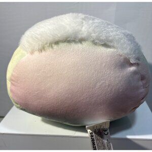 This 10-inch Squishmallows plush features a delightful rainbow pastel design with a soft purple hat and shiny sparkly horns, ideal for cuddling or decor.