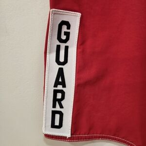 Original Watermen Lifeguard Shorts Mens 32 Red Nylon Drawstring Pockets Beach