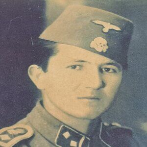 A very rare original 1943 picture of a member of the 13th Waffen SS Mountain division, also known as the 1st Croatian. The division, also known as the Handschar/Handsar, was recruited mostly from Bosnian Muslims along with some Croats, especially amongst its officer core. Due to a lack of enthusiasm for enlistment many Bosnians (and Albanians) were forced to join. This culminated in a mutiny in France in 1943 (the same year this was taken) during training -5 German officers were killed before control was re-established. About 1000 of its members were then killed or sent off to slave labor and concentration camps in Germany, after which the division participated in the SS' activities in the Balkans. It is stamped in back with the German eagle, a swastika and the number 43.