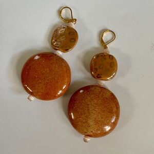 These are brand-new, never worn, hypoallergenic earrings handmade with Kazuri beads. These beads originate from Nairobi, Kenya, where single mothers create these beads out of Kenyan clay, painting them with original markings before firing them. They are gorgeous, one of a kind pieces!