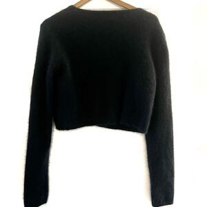 Orla Kiely Angora Crop Bow tie Snap front Cardigan Black sweater Sz 4
