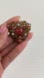 Ornate Filigree Brooch Red & White Speckled Art Glass Cabochon Stone Gold Tone