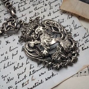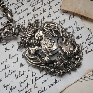 Ornate Silver Pendant Necklace Medieval Costume Jewelry