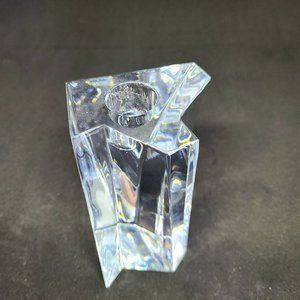 Orrefors Sweden abstract shape clear glass crystal candleholder/candlestick. 4'' tall, 2 5/8'' wide. Great condition.