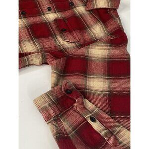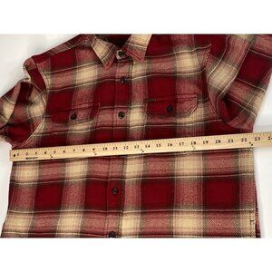 Orvis Big Bear Heavyweight Flannel Shirt Men’s L Red Check Plaid Shacket Pockets