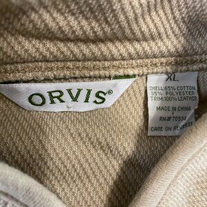 Orvis Jacket Sweater Womens XL Beige Button Up Cardigan Leather Elbow Patch