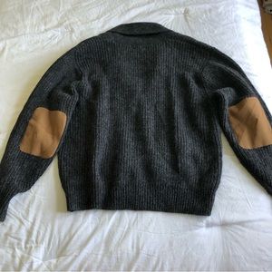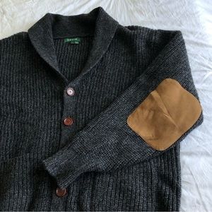 Orvis Wool Blend Knit Cowl Cardigan Sweater with Elbow Patches