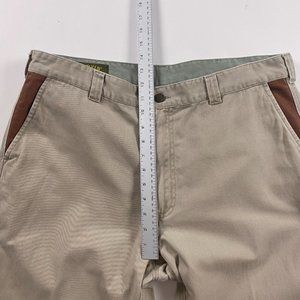 Orvis Zambezi Twill Pants Mens 38 x 29 Khaki Cotton with Leather Trim Cuffed