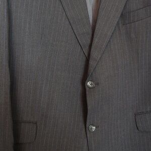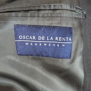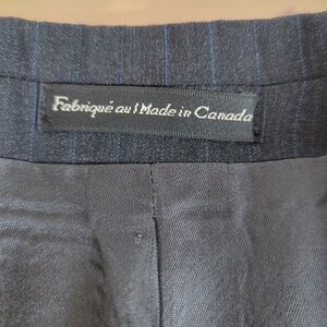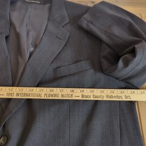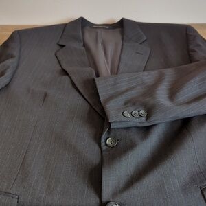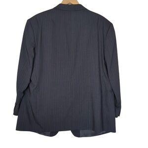 Oscar De La Renta Charcoal Grey w/Blue Pinstripe Virgin Wool Blazer